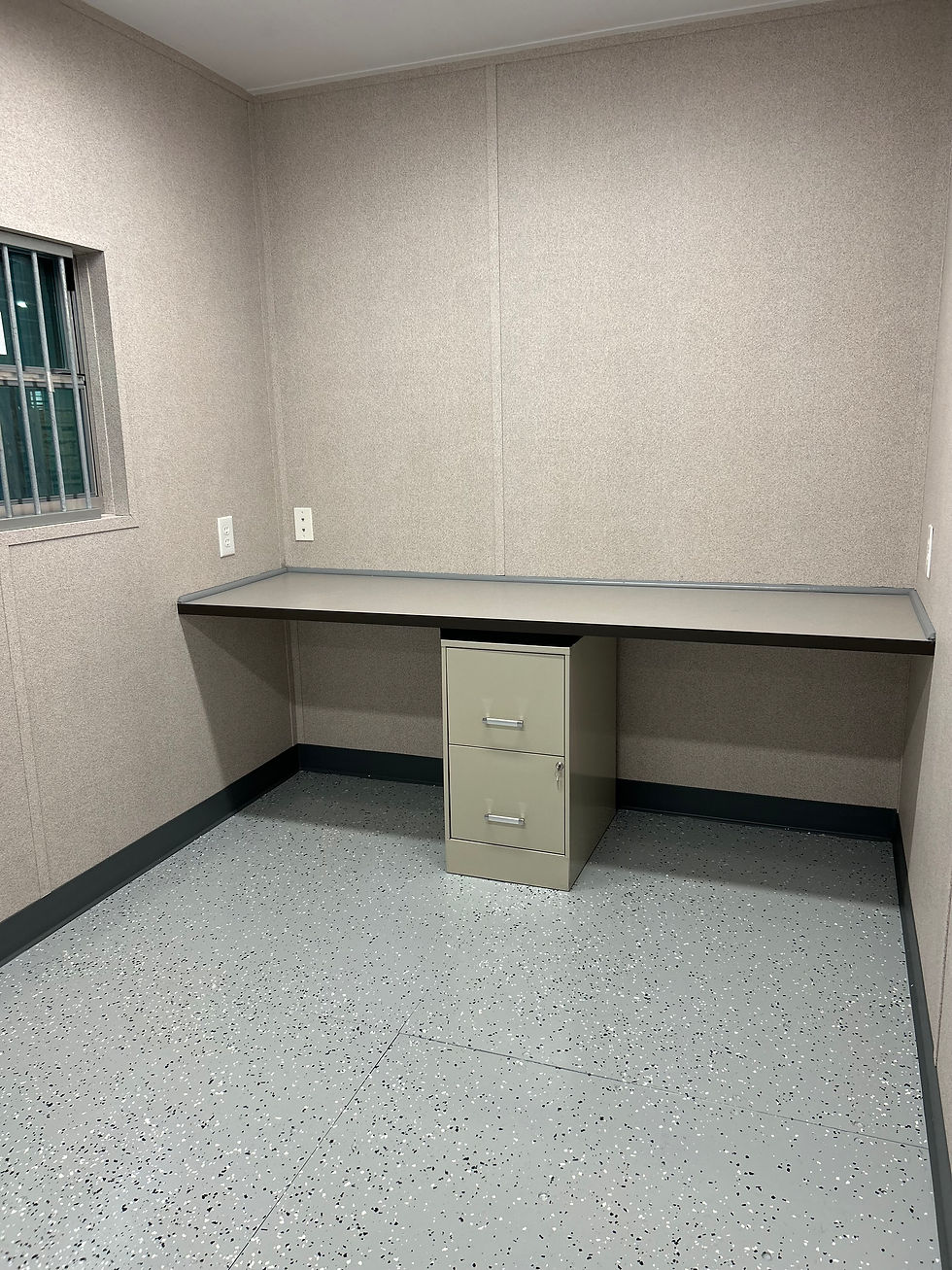 Our 40' double office unit is designed for teams that need separate, private workspaces in one secure container. It features two built-in desk areas with interior doors for added privacy, along with controlled air and interior lighting for a comfortable, productive environment. Perfect for job sites, field operations, or temporary office needs.